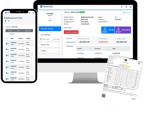 Numeri'Sco est une application gabonaise de gestion des bulletins scolaires et des paiements, destinée au cycle primaire.